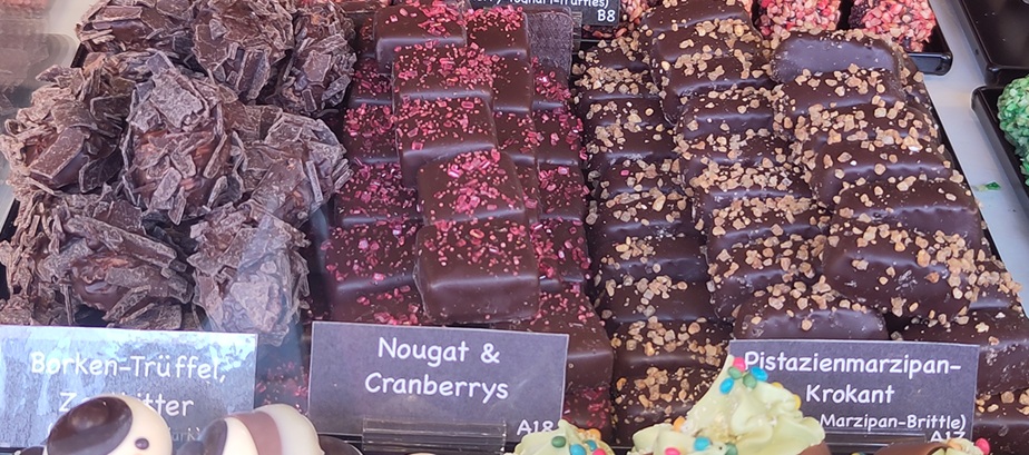 r köstlicher Neuzugang sind vegane Sorten der original belgischen Pralinen, die es seit 2025 an Stand Nr. 79 gibt. Koste und kaufe am besten gleich alle drei Sorten: Nougat & Cranberry, Borken-Trüffel Zartbitter und Pistazien-Marzipan-Krokant, denn eine ist leckerer als die andere!
