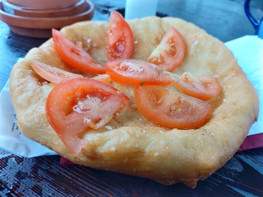 Vegane Lángos und Pommes aus frischen Kartoffeln im Feuerzangenbowlen-Dorf