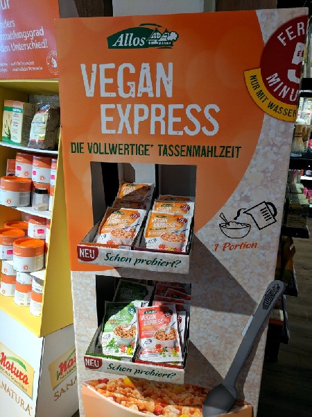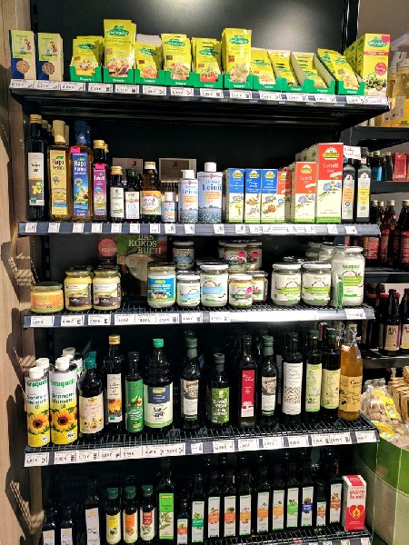 Super sortiertes Reformhaus mit großer Auswahl veganer Produkte, z. B. Alternativen zu Milch, Käse, Sahne, Joghurt, Ei, Mayo, Honig, Fleisch und Wurst. Zudem breites Sortiment weiterer vegane Produkte wie Pasta (auch glutenfrei und aus Linsen und Bohnen), Getreidesorten, Schokolade, Kekse, Gummibärchen, Aufstriche, Säfte, Tees und Convenience-Artikel.