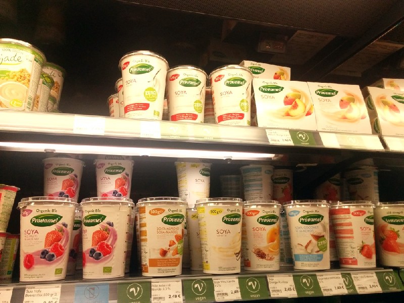 Für Naschkatzen gibt es unter anderem veganes Eis von Das Eis, Schokolade von Vivani, Vego und Naturata, Energieriegel von Foodlose und Roobar und knusprige Kekse von Sommer. Im Kühlregal stehen Joghurt-Alternativen von Sojade und Provamel in vielen Geschmacksrichtungen. Das Angebot an Milchalternativen ist ebenfalls riesig: Soja, Hafer, Mandel, Dinkel, Haselnuss, Cashew, Reis, Kokos oder Kombis daraus in Natur, Schoko, Vanille oder Erdbeer. Pflanzliche Sahne, Ei-Ersatz, Mayonnaise und zahlreiche Brotaufstriche gibt‘s natürlich auch. Und in der Kühltheke stehen vegane Bratlinge, Würstchen, Burger, Schnitzel, Filets, Frühlingsrollen, Falafeln, Käse-Varianten und vieles mehr bereit.