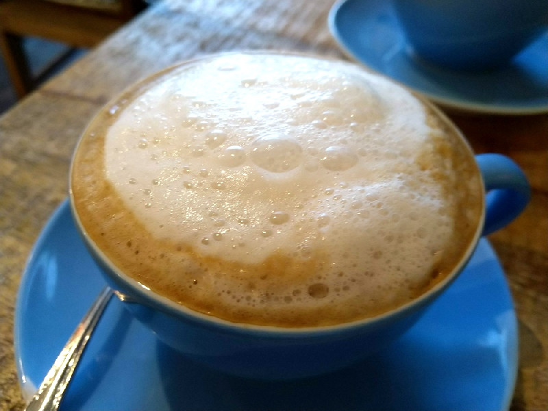 Wirf auch unbedingt einen Blick in die Kuchenvitrine, in der dich der saftig-schokoladig veganen Brownie erwartet – er ist glutenfrei, nussfrei und nur mit Datteln und Agavendicksaft gesüßt. Darüber hinaus locken dort oft weitere vegane Kuchen wie Zwetschgenkuchen, Johannisbeerkuchen oder Karottenkuchen mit veganem Frischkäse-Frosting. Die Kuchen werden gern auch auf Bestellung gebacken.