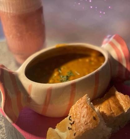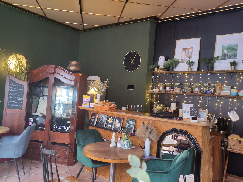 Zum Mittag wird ebenfalls meist ein veganes Biogericht angeboten, zum Beispiel Kichererbsen- oder Kürbissuppe. Und für Kaffeespezialitäten gibt es Hafermilch und Mandelmilch ganz ohne Aufpreis. Wer sich gern eine gute Tasse Tee gönnt, findet hier eine schöne Auswahl hochwertiger loser Teesorten.