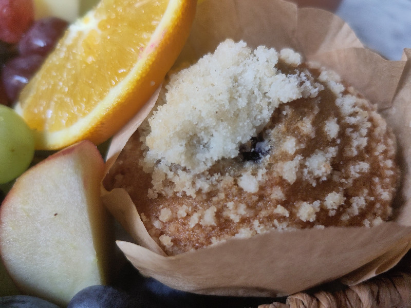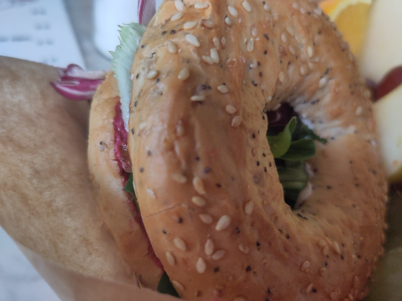 Das Kreativcafé bietet auf Wunsch eine vegane Frühstücksplatte mit einem fruchtigen Blaubeer-Muffin , einem frisch belegten Bagel, Saft und viel frischem Obst an. Den Bagel kannst du dir wahlweise mit Rote Bete-, Paprika-Trio- oder Curry-Mango-Aufstrich schmecken lassen. Natürlich gibt’s Bagel und Muffin auch einzeln.