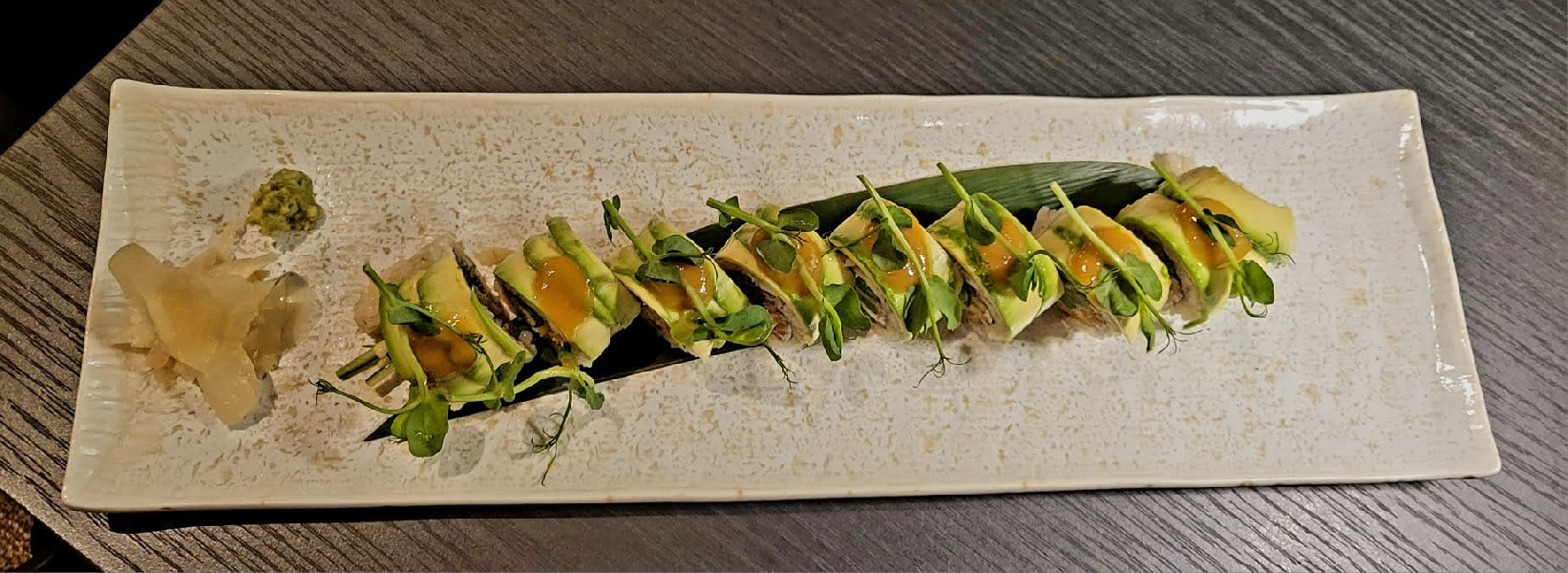 Die Sushikarte hält mehrere vegane und vegan bestellbare Signature Rolls für dich bereit, eine Sushi Chirashi-Box mit Avocado, Nori und Sesam, aber auch Sushi-Klassiker wie Inari (süße Tofutasche) und Hosomaki mit Gurke, Avocado, grünem Spargel und eingelegtem Kürbis.
