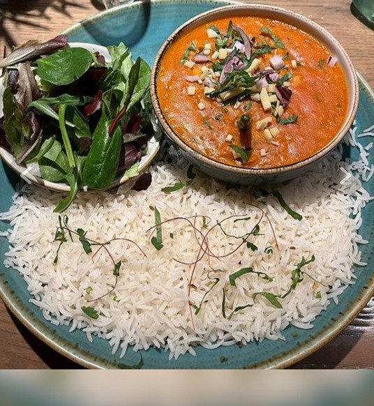 Vegane und vegan bestellbare Spezialitäten sind auf der Speisekarte klar gekennzeichnet, zum Beispiel südindische Speisen wie Veg Uttapam oder Masala Dosa – Crêpes aus Reis- und Linsenmehl, gefüllt mit Kartoffeln, Tomaten, Zwiebeln, Senfkörnen und Curryblättern, fein gewürzt, serviert mit Samber und Kokosnuss-Chutney.