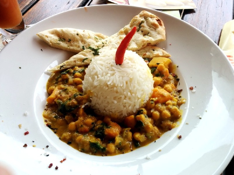 Bei den Hauptspeisen hast du unter anderem die Wahl aus farbenfrohen Bowls, Lieblingssalat mit Kräuter-Knoblauch-Ciabatta und veganem Flammkuchen mit Tomaten-Bärlauchsoße, gebackenen Blumenkohlröschen, Avocado, frischem Feldsalat, Karotten-Pastinaken-Ingwer-Chips, Apfel-Chili-Chutney und veganer Limetten-Koriandercreme.