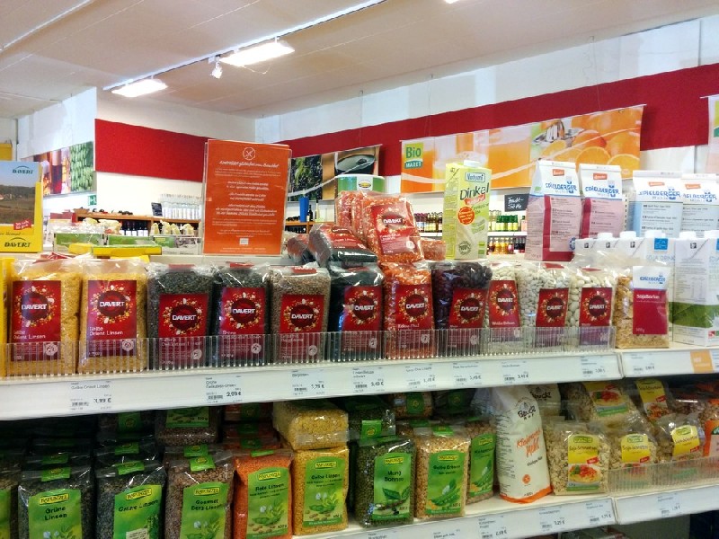 Hier füllt sich der vegane Einkaufswagen rasch mit Leckereien: Im Biomarkt Vier Jahreszeiten in Erlangen kannst du dich mit dem ganzen Sortiment vegan...